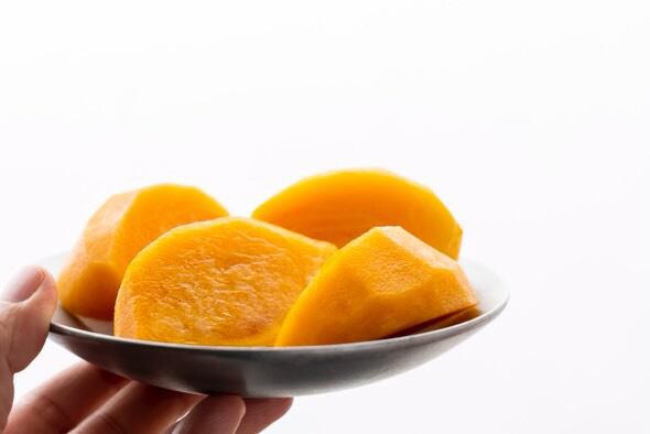 通常、お尻が青い状態で収穫する太秋柿ですが、